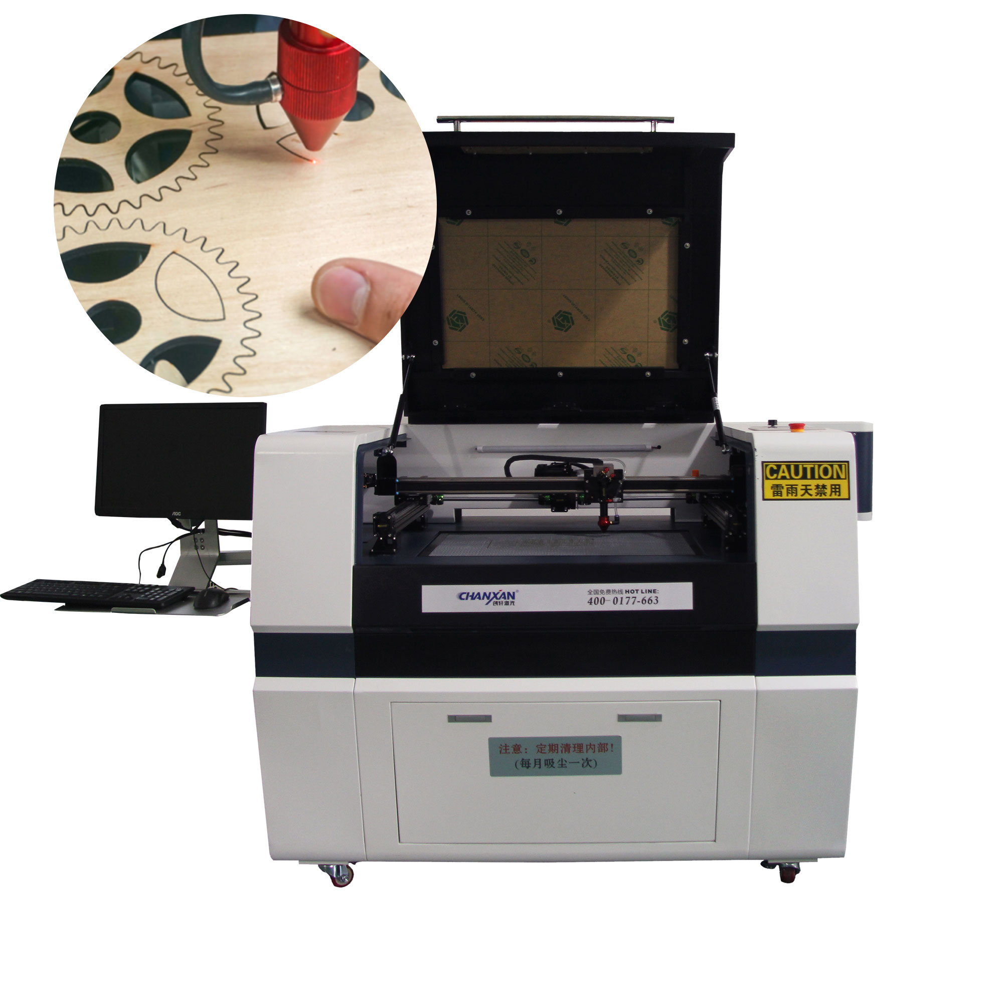 Découpe laser de bois fin (jusqu'à 3-5 mm), cuir, textiles et plastiques